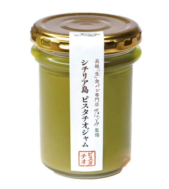 乃が美の「生」食パンは、食パンのタブーとされる腰折れギリギリの「柔らかさ」を持つ「創業」乃が美、焦げ直前まで焼き上げた「お焦げ」の旨味が特徴的な「黒山」乃が美の2種類があります。どちらの「生」食パンともおいしく召し上がっていただけるよう、「シチリア島ピスタチオジャム」はピスタチオの甘さや濃厚な風味のバランスを調整しご用意いたしました。素材本来の味を生かした「シチリア島ピスタチオジャム」と乃が美の「生」食パンは相性抜群です。ブロンテ産ピスタチオジャムの味わいを、乃が美の「生」食パンと合わせて是非お楽しみください。