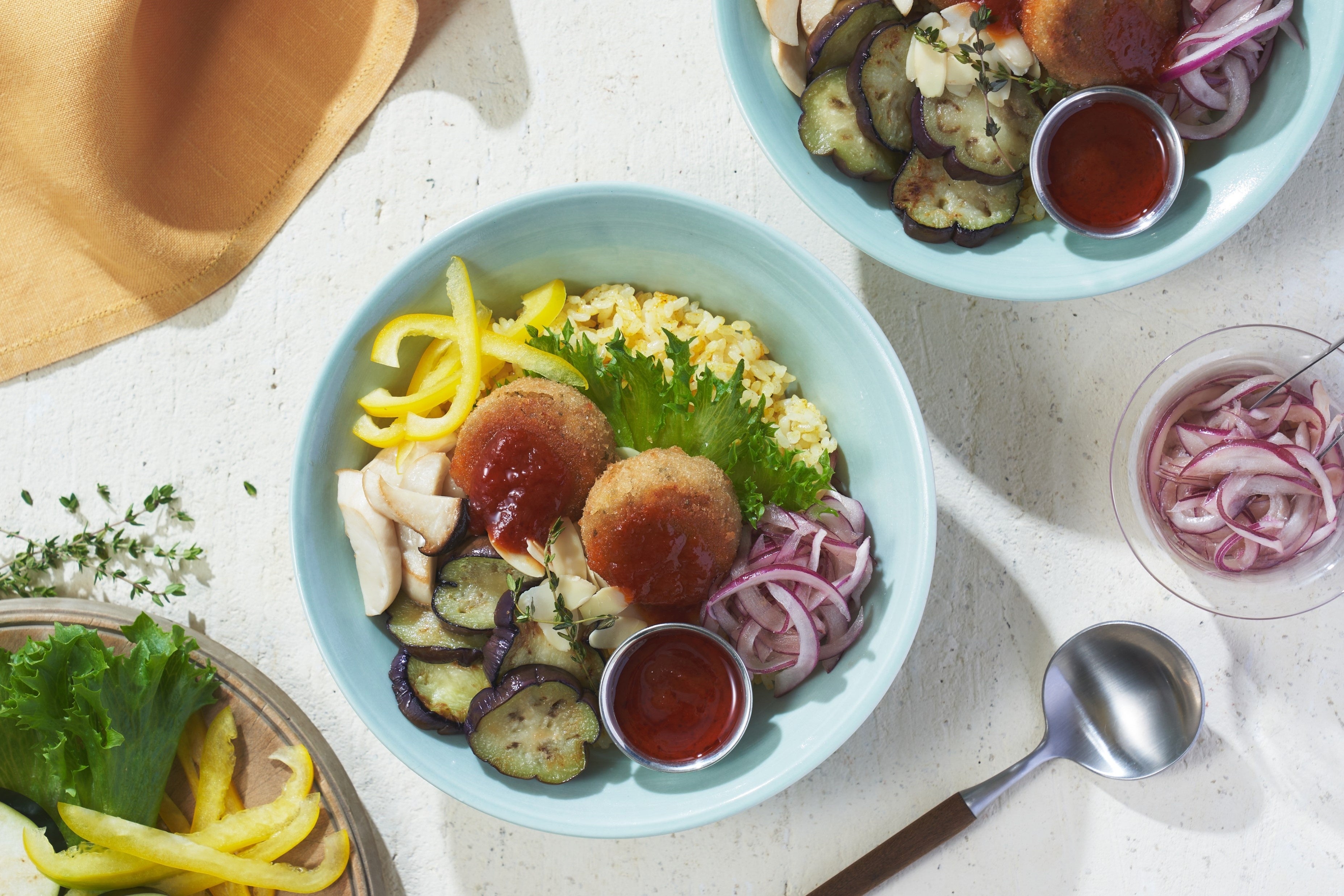 ■野菜と植物性たんぱく質たっぷりのライスボウルを、ヘルシーな夕食メニューに