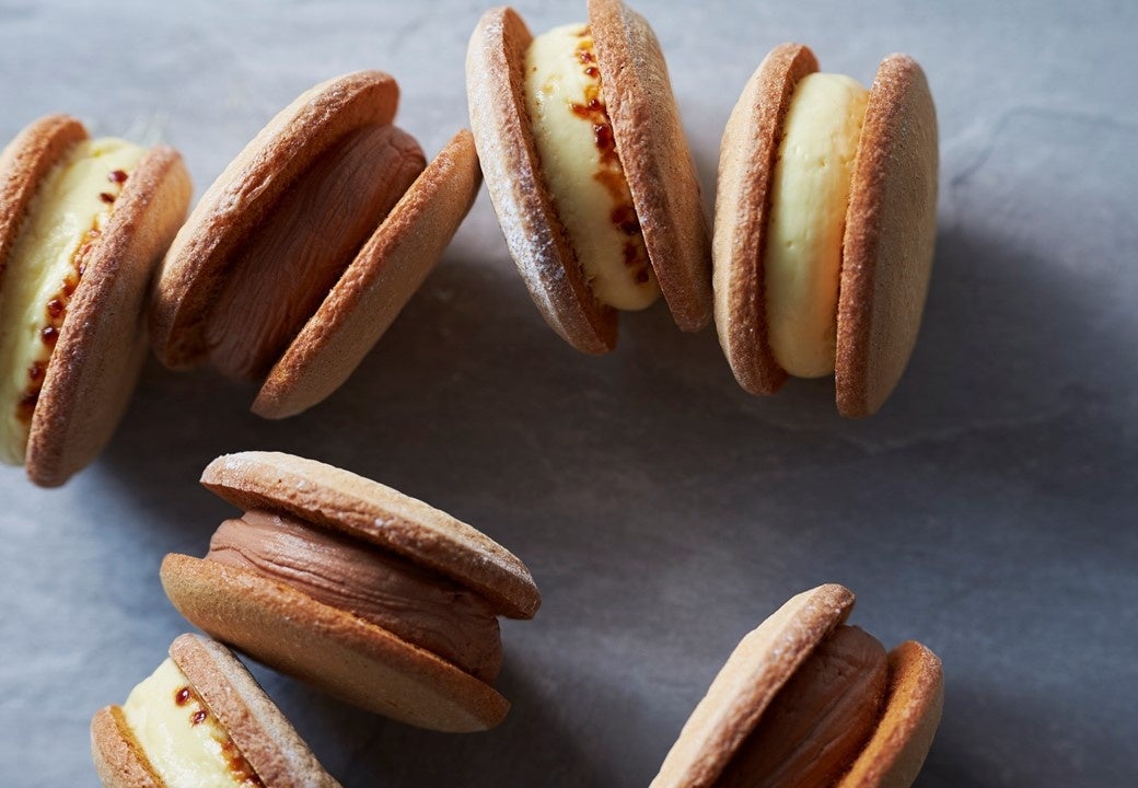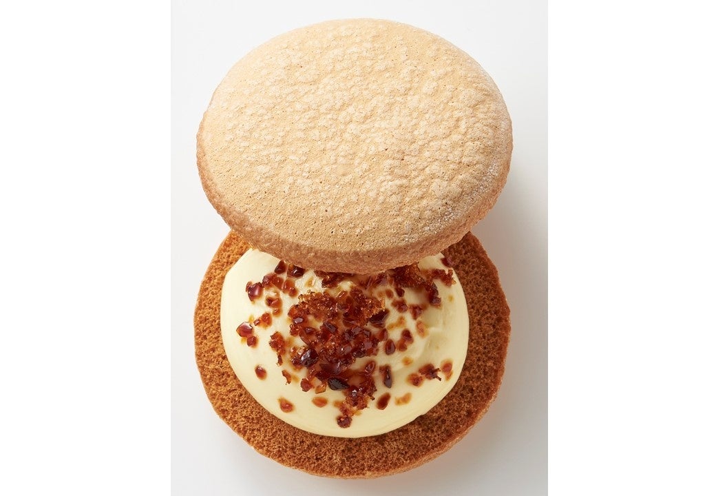 2層に充填したプリン風味のクリームをサンドしました。キャラメリゼがアクセントとなった豊かな味わいです。