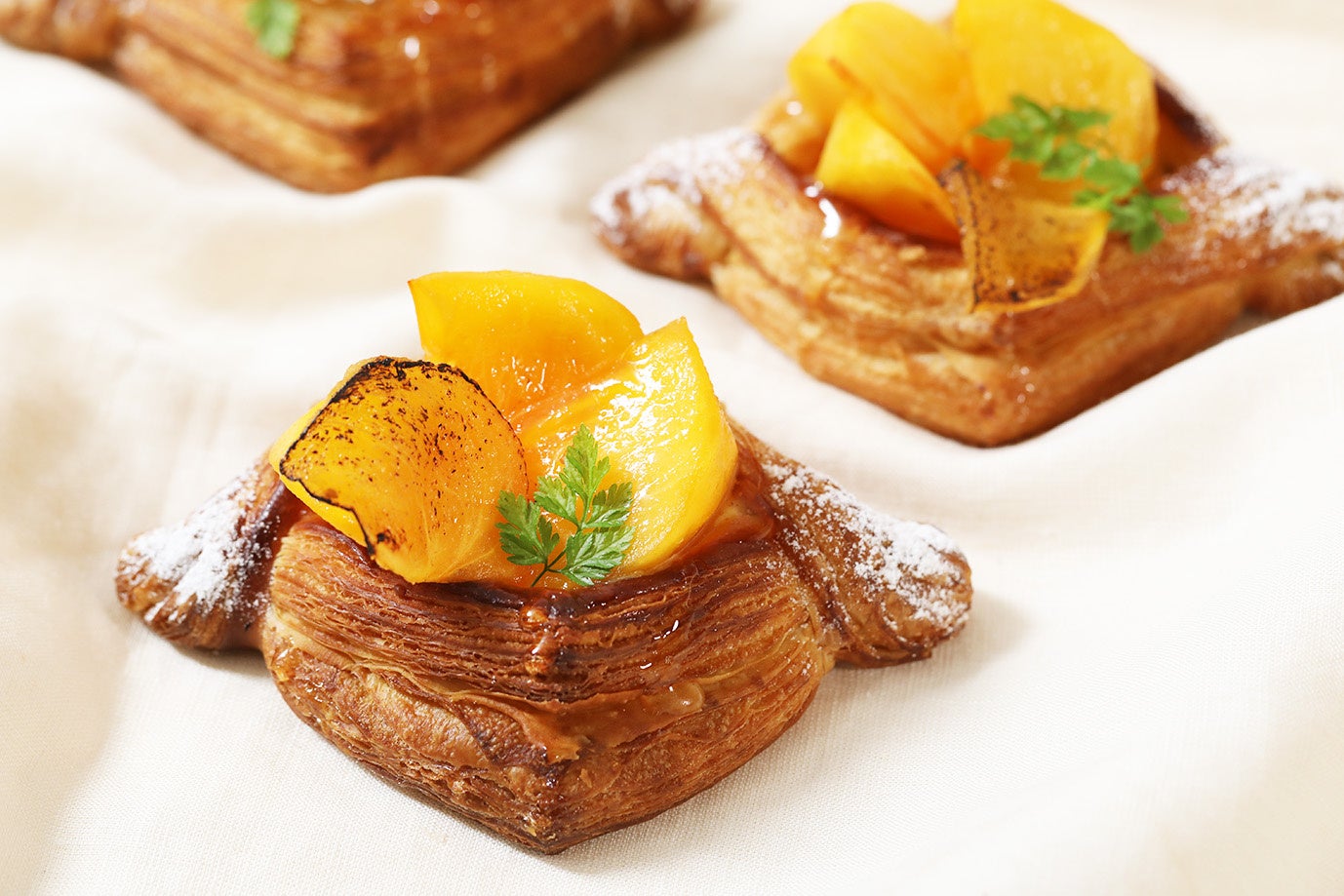 バゲットラビットの季節のデニッシュでは、初の組み合わせとなる”柿”。サクサクに焼き上げたデニッシュに、秋から冬にかけて旬を迎える柿を飾りました。