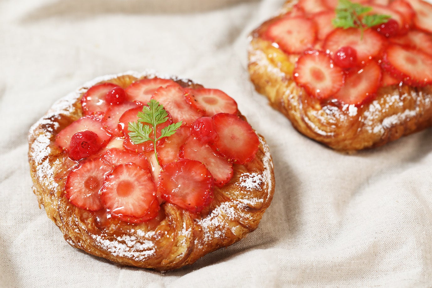 サクサクに焼き上げたデニッシュにイチゴをふんだんに飾った11-12月限定のデニッシュです。