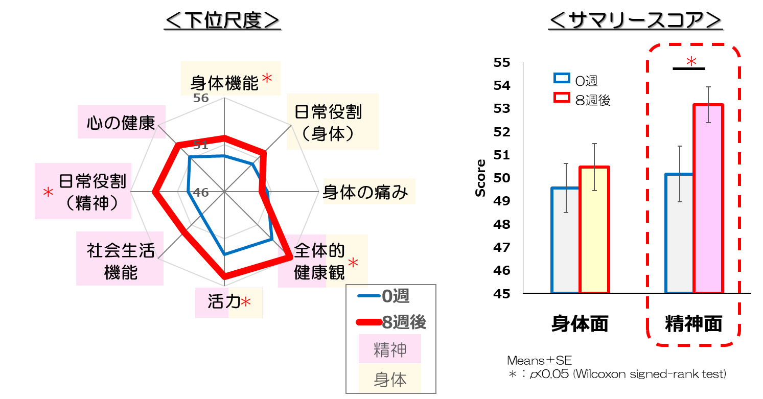 健康関連QOLはSF-8調査票を用いて調べました。SF-8は疫学調査などで国際的に広く