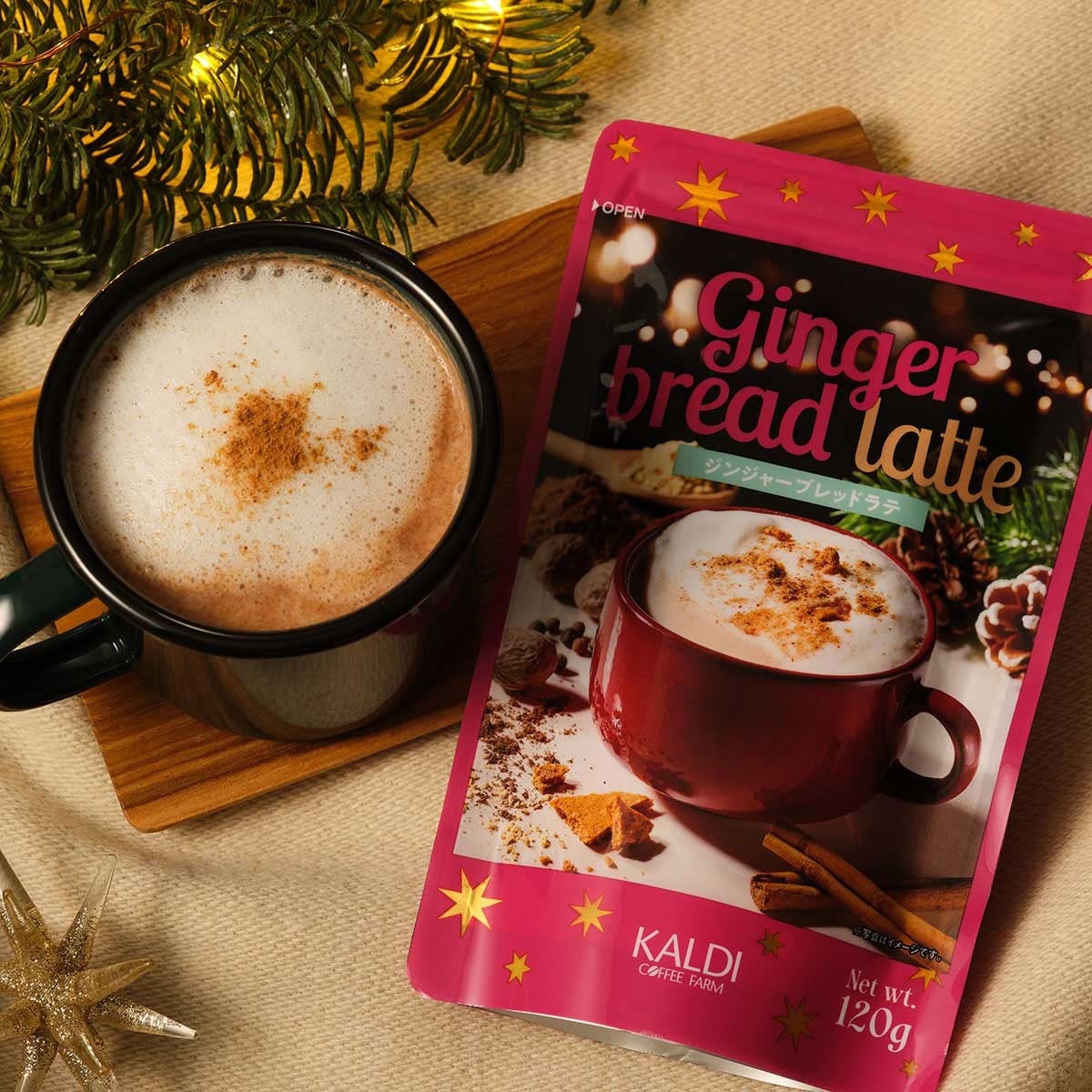 クリスマスの定番菓子ジンジャーブレッドをイメージしたインスタントラテが新登場!ジンジャー、ナツメグ、オールスパイスなどの豊かなスパイスの風味が楽しめます。