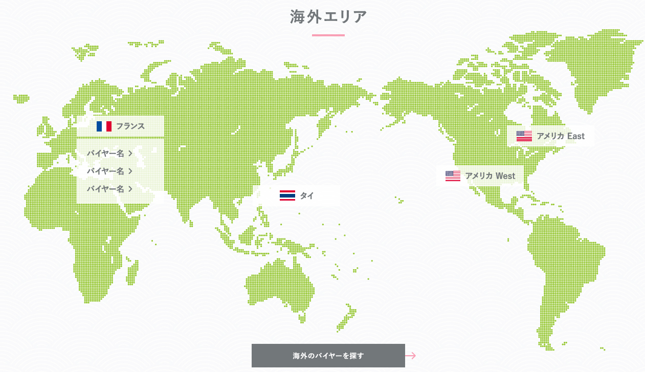 希望する国、取扱商品、事業形態等、海外バイヤーを自由に検索できます。