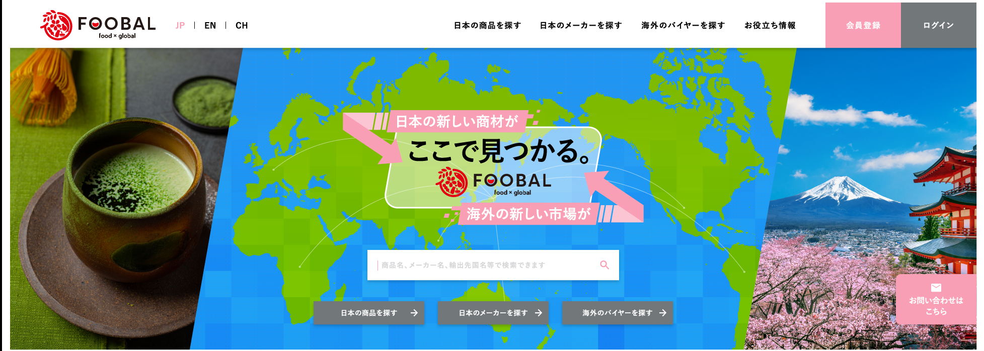FOOBALとは、FOOD×GLOBALの造語で、日本産食品を海外市場に輸出したい製造業者等と、日本産の輸入食品を取り扱いたい海外の流通事業者、バイヤー、飲食店等が無料で登録・利用できる事業者向け会員制サイトです。