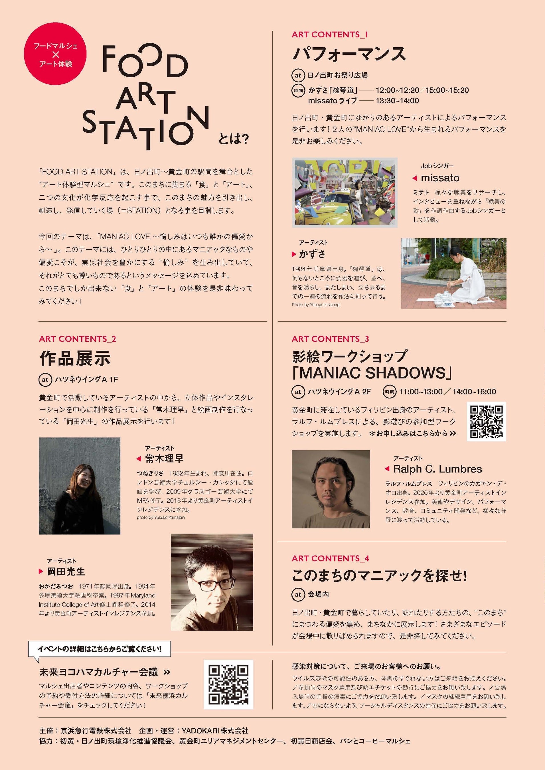 YADOKARI株式会社(本社:神奈川県横浜市 、 代表取締役CEO さわだいっせい・代表取締役COO ウエスギセイタ、以下YADOKARI)は、京浜急行電鉄株式会社(本社:横浜市西区、取締役社長:川俣幸宏、以下京急電鉄)との連携の下、横浜市日ノ出町・黄金町・初音町エリア活性化の一環として、京急線日ノ出町~黄金町駅間の高架下エリアにて、第3回の開催となるアート体験型マルシェ「FOOD ART STATION ”MANIAC LOVE” 〜愉しみはいつも誰かの偏愛から〜」を、2022年11月6日(日)に開催致します。