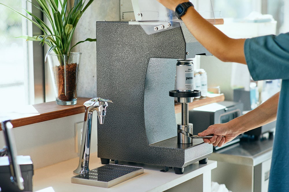 アメリカから取り寄せた缶シーリングマシンを使用し、その場で缶ジュースができる様子をご覧いただけます。