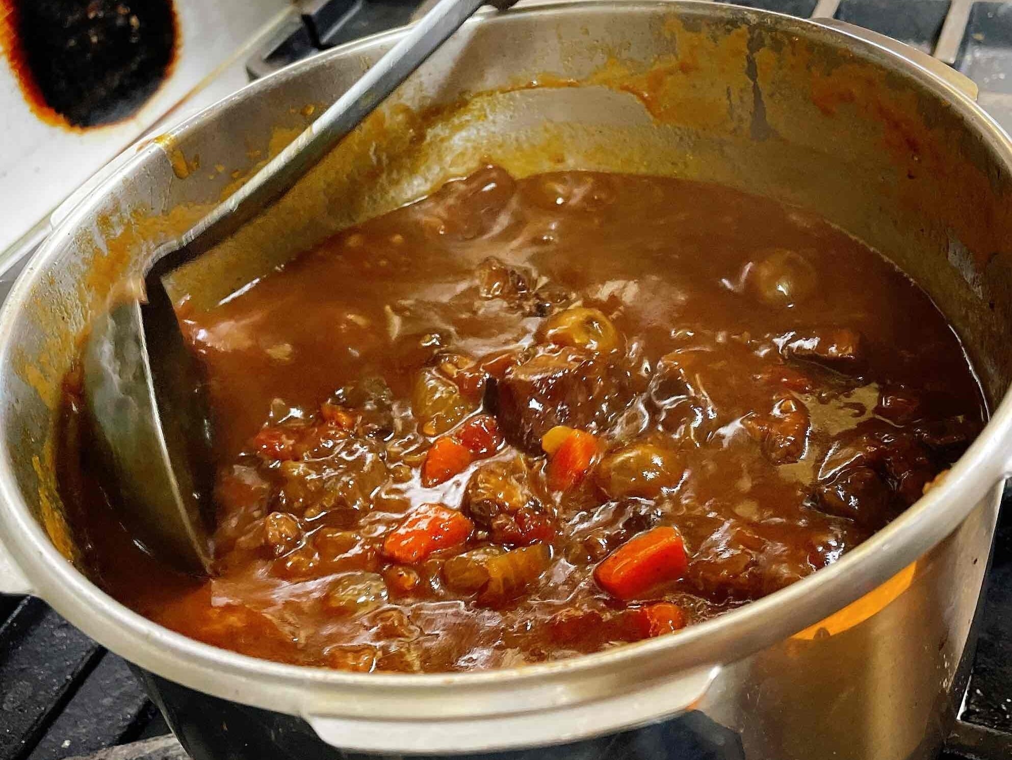 ボリュームはたっぷり1人前。ココット皿なら2人前。ゴロゴロの大き目の牛肉が人気の秘密です。
