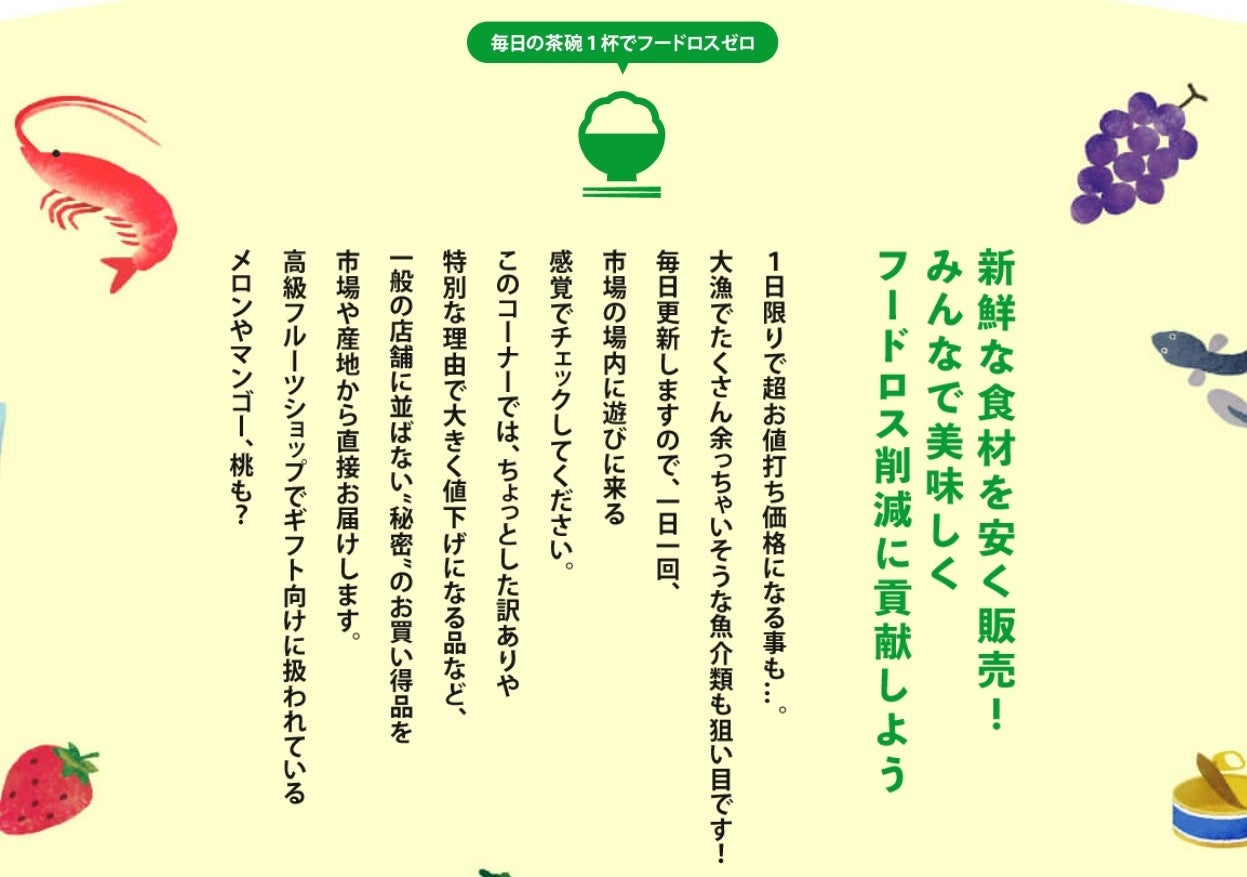 豊洲市場ドットコムのフードロス削減プロジェクト https://www.tsukijiichiba.com/user/collection/264