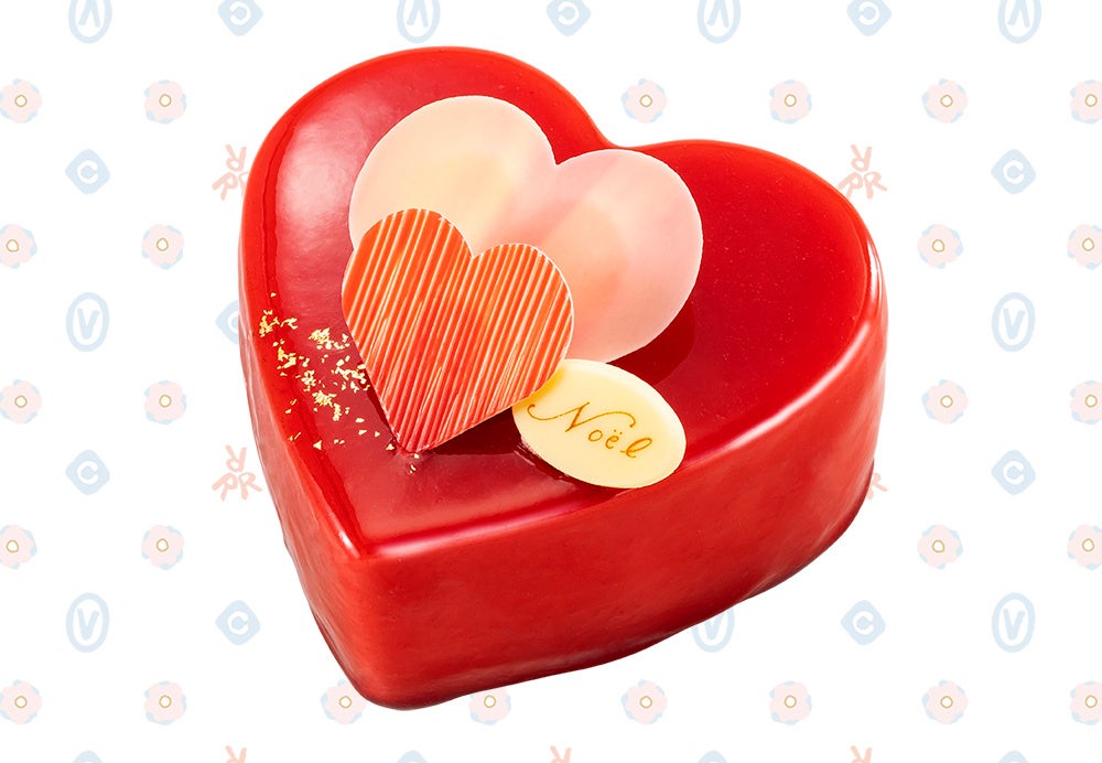 真っ赤に輝くグラサージュの中に、キュンと甘酸っぱい「フランボアのムース」をつめこんで。カットすると中にフランボアのコンフィチュールがとろりと覗く、まさにルビー色の宝石のようなハート型のガトーです。