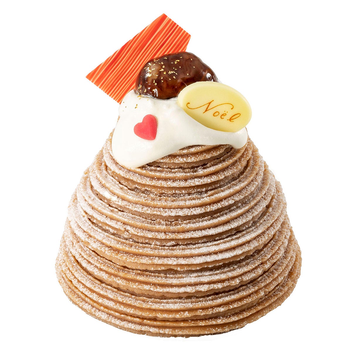 ツリーの頂に飾った、まるで星のように輝くマロングラッセ。マロンの濃厚なコクとなめらかなホイップクリーム、さらにキャラメルムースもしのばせた、とっておきのモンブランです。