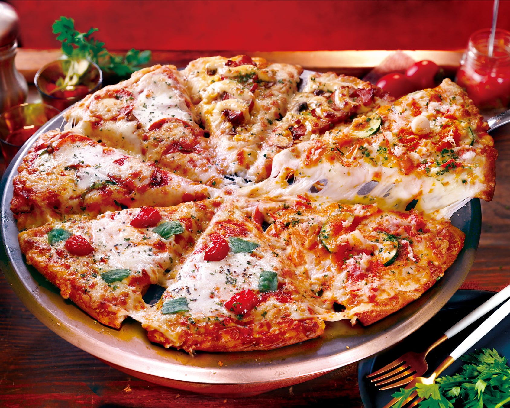 カニとオマール海老ソースの贅沢ピザ、 とろけるモッツァの贅沢マルゲリータ、 大海老のガーリックシュリンプ、 ジューシーステーキ、 モッツァ イタリアーナ、 チェダーオールスターミート、 アンチョビオリーブシーフード、 チェダーオールスターミート、 特製ポルチーニソースのピザ、 チーズ&ハニー、 モッツァレラとアスパラベーコンのピザ
