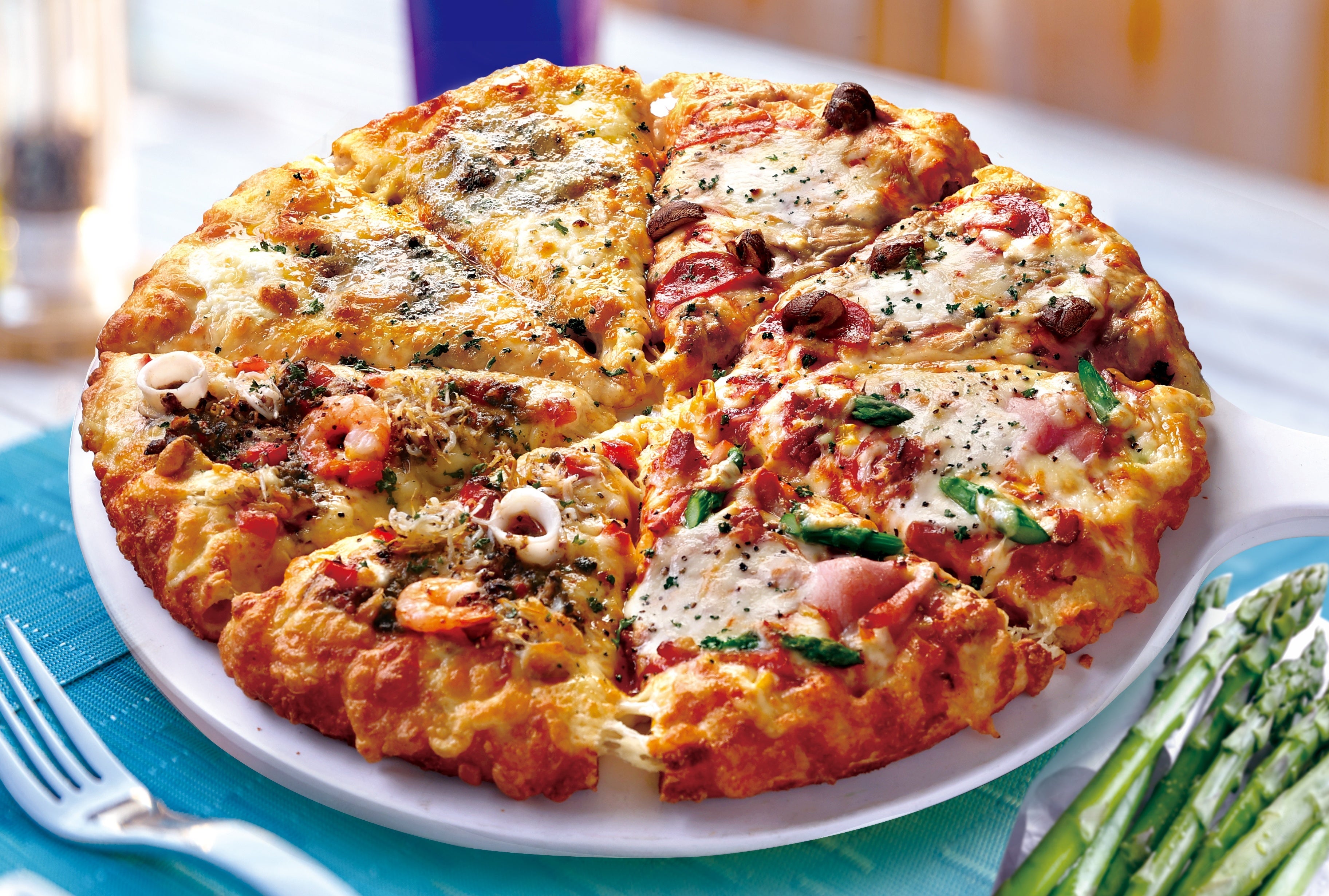 カニとオマール海老ソースの贅沢ピザ、 とろけるモッツァの贅沢マルゲリータ、 大海老のガーリックシュリンプ、 ジューシーステーキ、 モッツァ イタリアーナ、 チェダーオールスターミート、 アンチョビオリーブシーフード、 チェダーオールスターミート、 特製ポルチーニソースのピザ、 チーズ&ハニー、 モッツァレラとアスパラベーコンのピザ