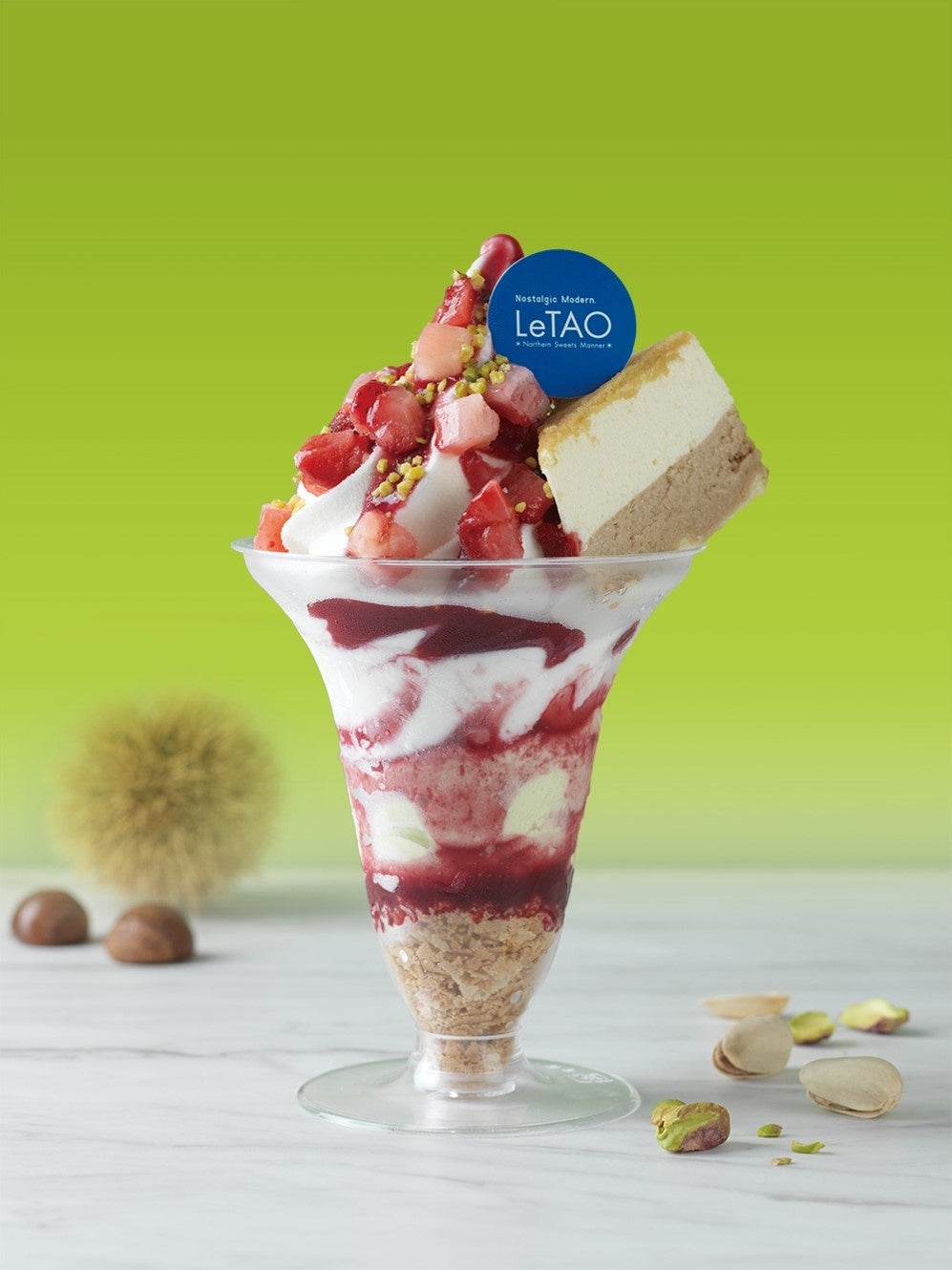 ルタオ新千歳空港店(運営:株式会社ケイシイシイ)」は2022年11月1日(火)より、新商品「ムースフロマージュパルフェ~ピスターシュマロン~」を販売いたします。冬季限定「マロンドゥーブル~イタリア栗~」とルタオオリジナルソフトクリーム「クレームグラッセ」を一度に楽しめる、ルタオの特徴がたっぷり詰まった新商品です。