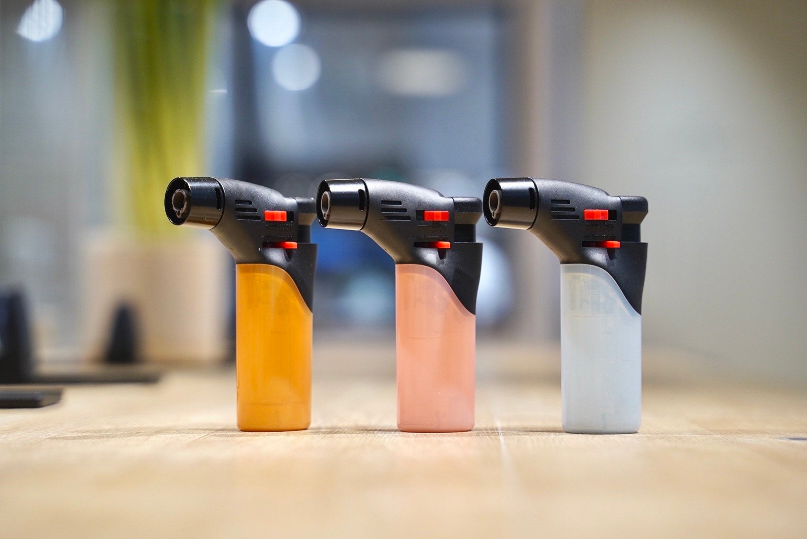 またテイクアウトの際にも自宅で安全に美味しく楽しく“炙りたて”を楽しんでもらえるよう家庭用クッキングバーナー『あぶり師』も同時開発。ALLUMAGE LABORATOIRE (アリュマージュ ラボラトワ)のオープンに合わせ商品化。その用途はクッキーフランのみに留まらず、できあいの総菜やいつもの料理の仕上げなど、アイデア次第で“炙り”がお楽しみいただける新しいキッチンツールとして無限の可能性が広がります。
