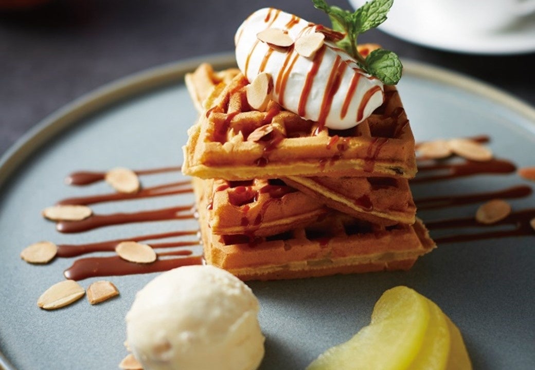 ★期間限定★りんごのワッフルとお飲物 焦がしバターキャラメルソース