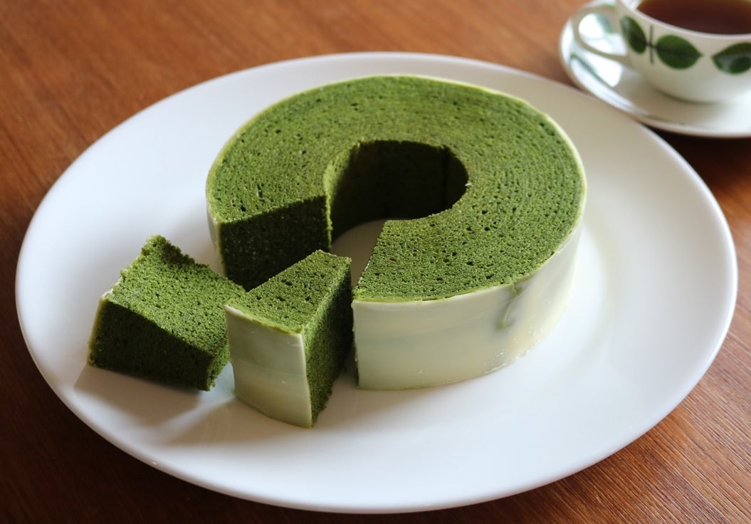 静岡県朝霧高原高級卵「宝山」を使用。静岡県産の高級抹茶を極限まで練りこみ、