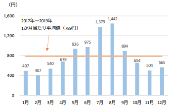 また、総務省統計局が行った家計調査によると、アイスクリームおよびシャーベットの月別支出金額は、8月に最高となり、10月には8月の半分以下になるといわれています。以前に比べると、定番のフレーバーを中心に夏以外の季節における需要が増えている傾向にはありますが、季節性の高い商品といえます。