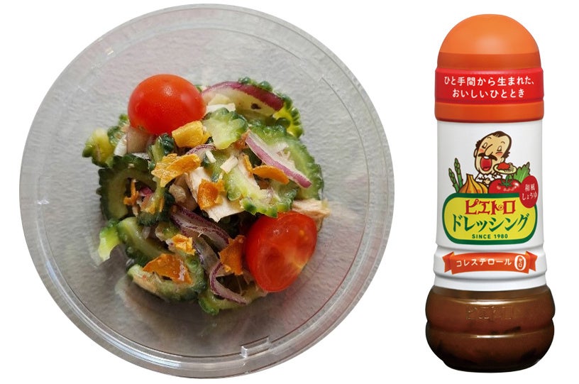 沖縄で栽培されたゴーヤとミニトマトに、ツナ、「ピエトロドレッシング 和風しょうゆ」をあわせた『オリジナルマリネサラダ』をピエトロのシェフが考案。マリネにすることでゴーヤの苦味がまろやかになり、お子さまもおいしく楽しめるサラダに仕上げています。当日はQRコードからレシピを読み込んでいただけるよう会場に掲示し、ご来場の皆さまへ地元食材の新しい楽しみ方をお伝えいたします。