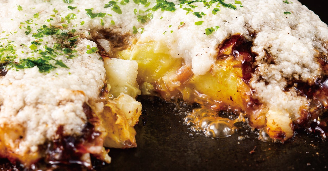 チーズやバターフレーバーを使用した、「洋風な味わい」の「山芋お好み焼き」!