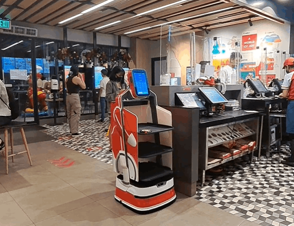 その名は「Lucki」です。オリオンスター社製のロボットは豊富なAPI種類があり、すぐにJollibeeの使用中のPOS/KDSシステムに連携を実現できました。この機能の実現にあたって、Luckiは確実に店内のサービス業務に馴染んみ、生身の人間スタッフのように働きをしてくれます。