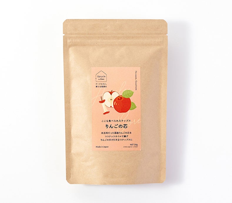 カットフルーツ工場で未活用だった国産りんごの芯をココナッツオイルで揚げ、りんごの甘さが引き立つチップスに仕上げました。