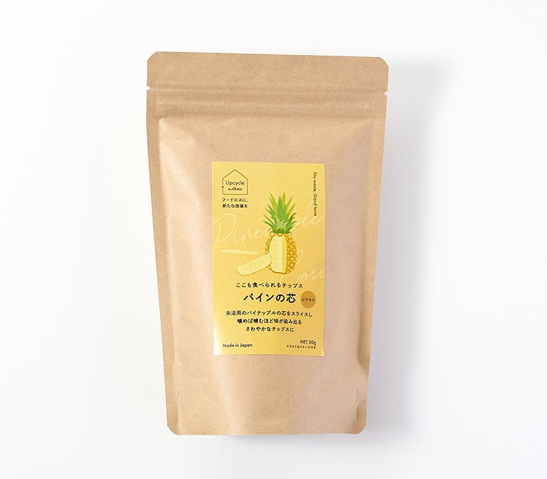 未活用のパイナップルの芯を薄くスライスし、噛めば噛むほど味が染み出る、やさしい甘さのチップスに仕上げました。ほんのりシナモンが香るチップスはそのまま召し上がるほか、カレーなどのトッピングにもおすすめです。