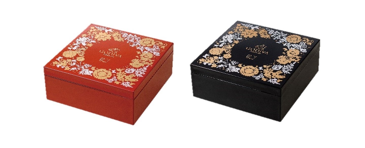 朱塗のお重の「50周年 アニバーサリー -秋冬- スイーツおせち (11粒入)」と、西武池袋本店と西武・そごうの公式ショッピングサイト「SEIBU SOGO e.デパート」限定の漆黒のお重「50周年 アニバーサリー -秋冬- スイーツおせち ブラック (11粒入)」のパッケージには、現代日本画家、大竹寛子氏による繊細で優雅なイラストレーションを施しております。