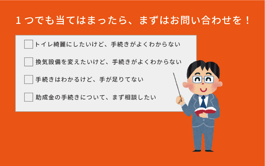 トイレと換気設備を助成金でリニューアルすることで、ご来店いただくお客様にも心地よくお過ごしいただけるため、滞在時間が延びることで自ずと単価が上がり、売上アップに繋がる可能性もあります。(※業務用のビルトインエアコンのみならず、ルームエアコンでもご利用可能な場合がございます。)