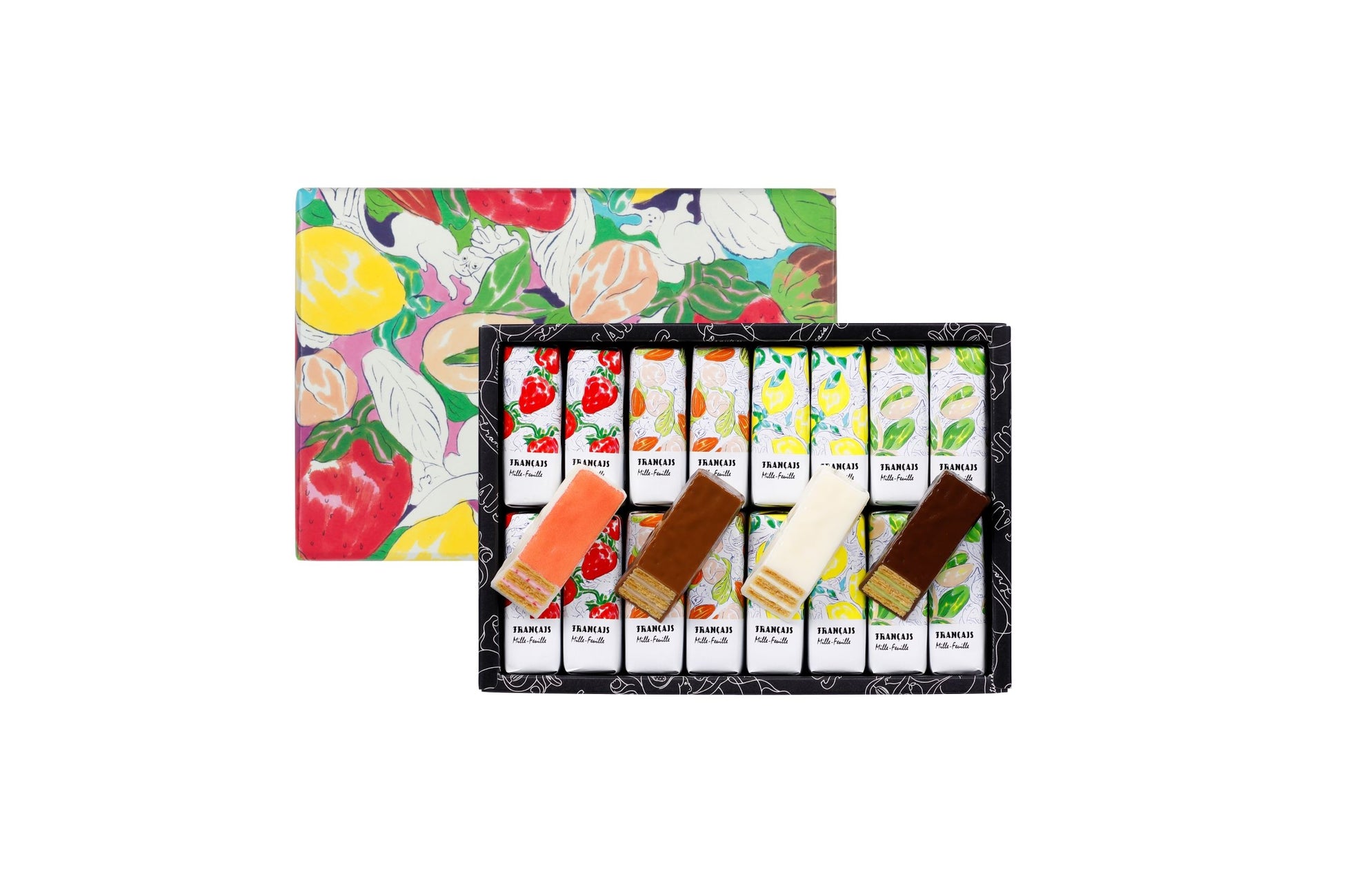 個性の異なる「いちご」「れもん」「ピスタチオ」「ジャンドゥーヤ」4つのミルフィユを詰合せいたしました。