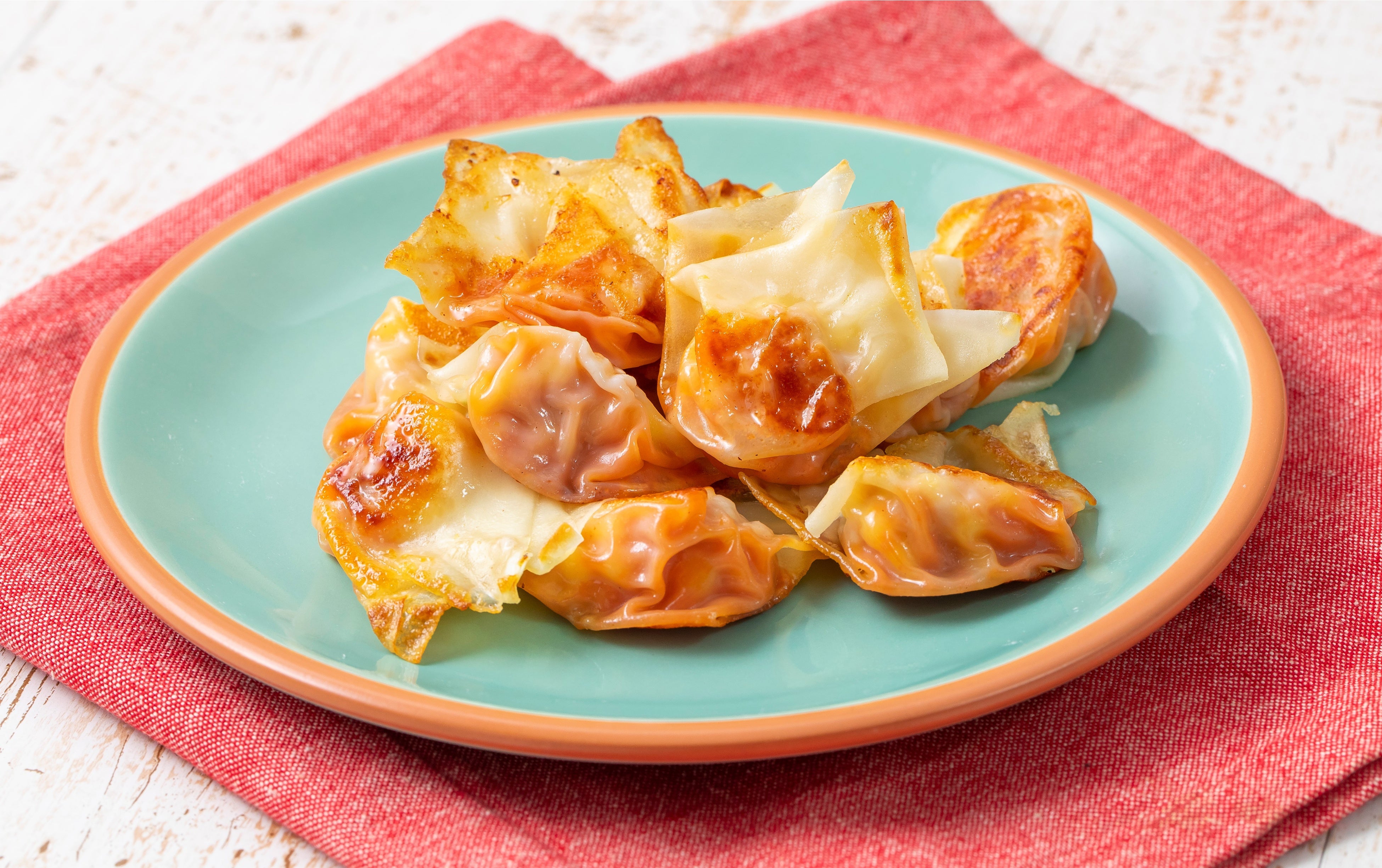 明太子とチーズを使った一口サイズで食べやすい焼きギョーザ。 おつまみはもちろん、おかずにもオススメの一品。