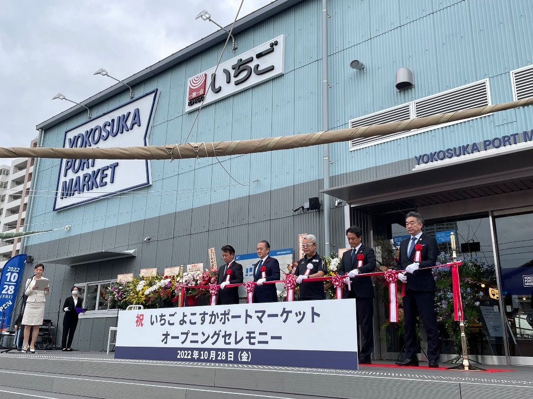 いちご よこすかポートマーケットは、一般財団法人シティサポートよこすか(横須賀市の100%出資団体)が、PPP(パブリック・プライベート・パートナーシップ)として運営事業者選定に向けた公募を行い、当社が代表者とするコンソーシアムが2019年に選定され進められたプロジェクトです。旧よこすかポートマーケットは、神奈川県横須賀新港に1987 年に建設された冷蔵倉庫を活用し、2013 年、横須賀市の地産地消推進事業の一環としてオープンしました。この施設をさらに発展させ、神奈川県を代表する観光集客の核となる施設とすべく、PPPにおいて、現存不動産の価値を活かす当社のコア・コンピタンスである心築(しんちく)をご評価いただき、施設のリニューアルとその後の運営を任せていただく運びとなりました。施設に改修を加え、デザインを一新し、三浦半島の豊かな食文化の代表となる出店テナントを誘致し、面積を旧施設の2倍に拡張し、本日のリニューアルオープンを迎えました。