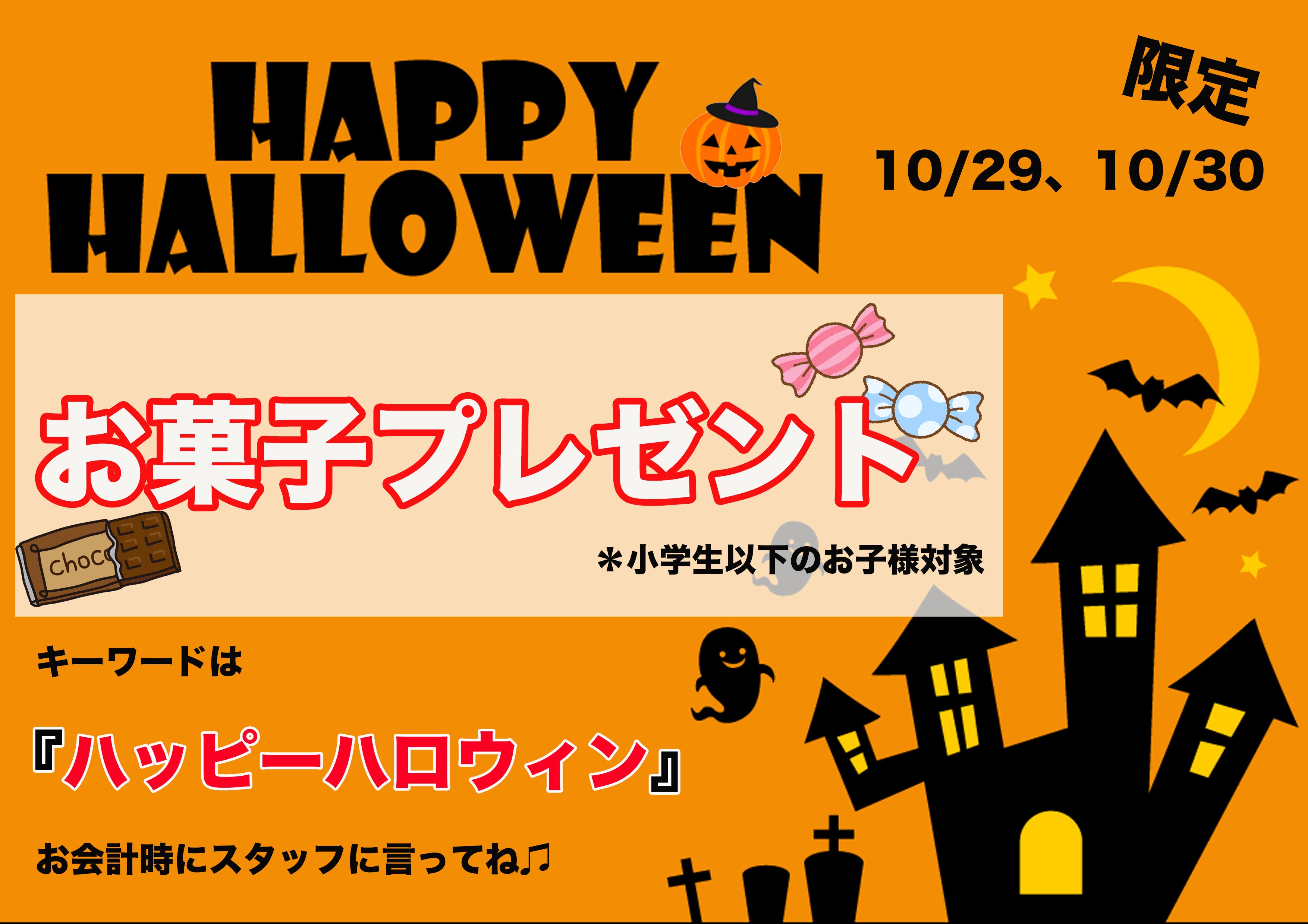 お会計時にスタッフへ「ハッピーハロウィン」とお声かけください♪