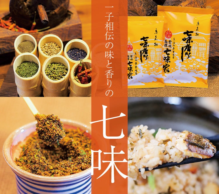 七味家は日本三大七味のひとつ伝統の「七味唐辛子」をはじめ こだわり厳選素材を使用した薬味で360年愛されてきました。 かける、そそぐ、いれる、そのひと手間の中でさらに美味しくなる商品を届けします