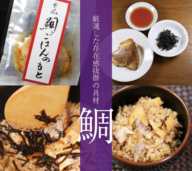 - ・昨年からグレードアップ!今年は国産鯛を使用したごはんセットが新登場。老舗が調えた贅沢アイテム「京風鯛ごはん」はギフトでも活躍必至。