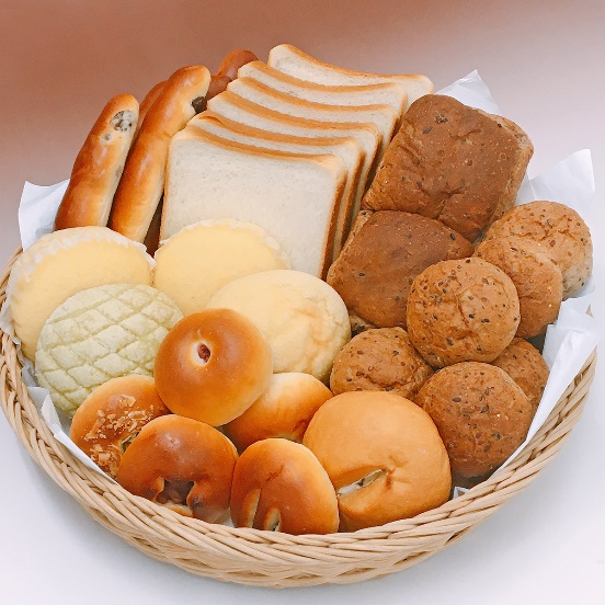 セット内にはオンラインショップ限定11月新商品の『穀物ロール(10個入り)』『五色米パン』などおいしい穀物パンをご用意しました。