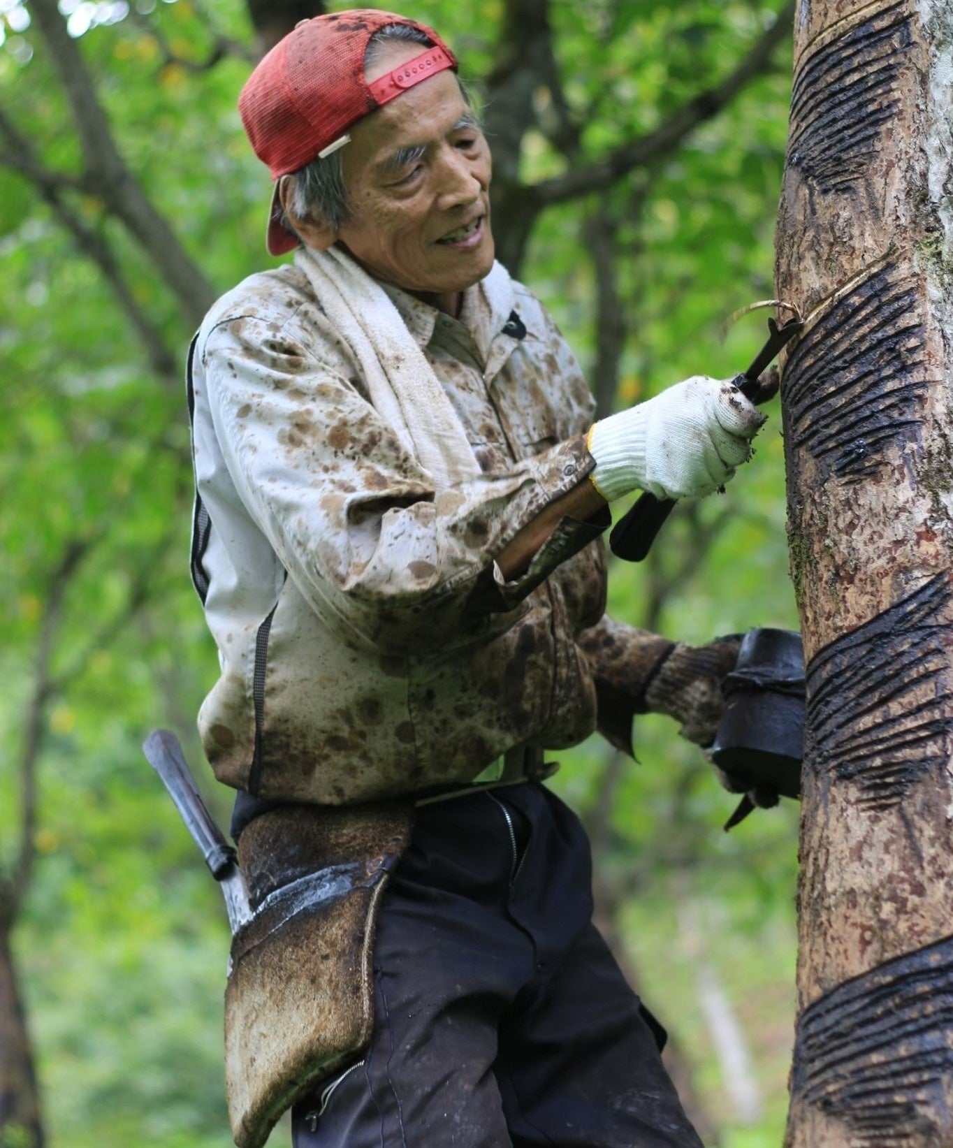 地域おこし協力隊の吉田さんは師匠に指導いただきながらこのうるし掻きの作業にも入られております。