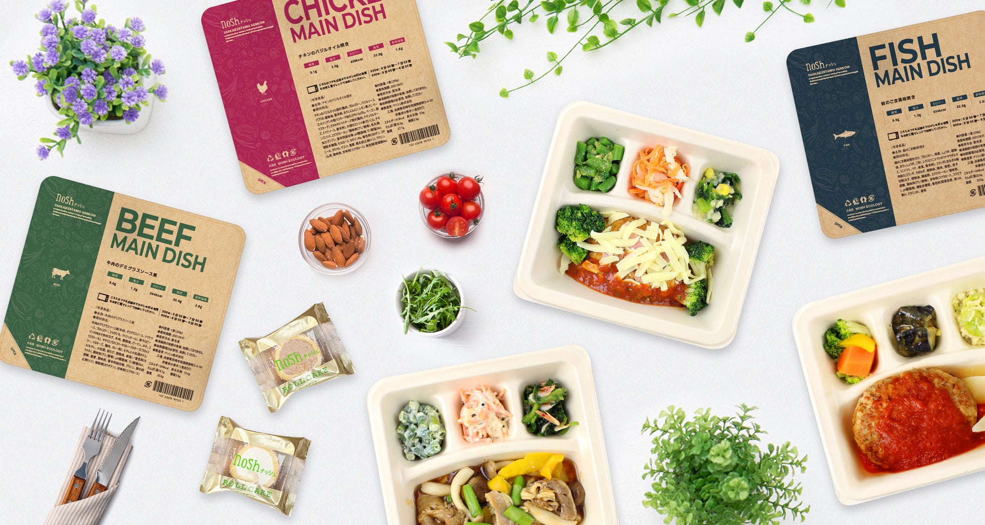 「社会全体を健康に。」を理念とする当社は、商品の企画・製造・販売までを一貫して自社で行っています。 多忙な毎日の中で健康的な食事の準備をすることは簡単ではありません。そうした中で、手軽に栄養管理ができる「nosh」は、自宅に常備される“国民食”となることを目指しています。自社専属シェフと管理栄養士が開発したすべての商品は糖質30g以下、塩分2.5g以下の栄養価を満たし、常時60品以上の商品は継続的にご満足いただけるよう、毎週3商品の新アイテムを投入しています。