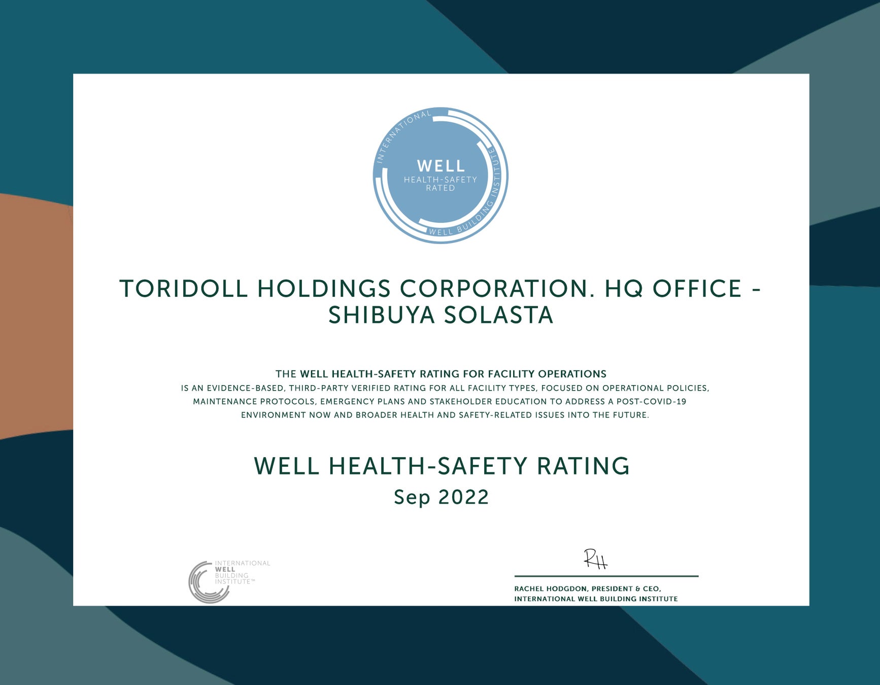株式会社トリドールホールディングス(東京都渋谷区、代表取締役社長 兼 CEO 粟田貴也、以下、トリドールHD)は、本社オフィスを構える「渋谷ソラスタ」19階・20階において、2022年9月に「WELL Health-Safety Rating(以下、WHSR)」認証を国内外食企業としては初めて取得いたしました。