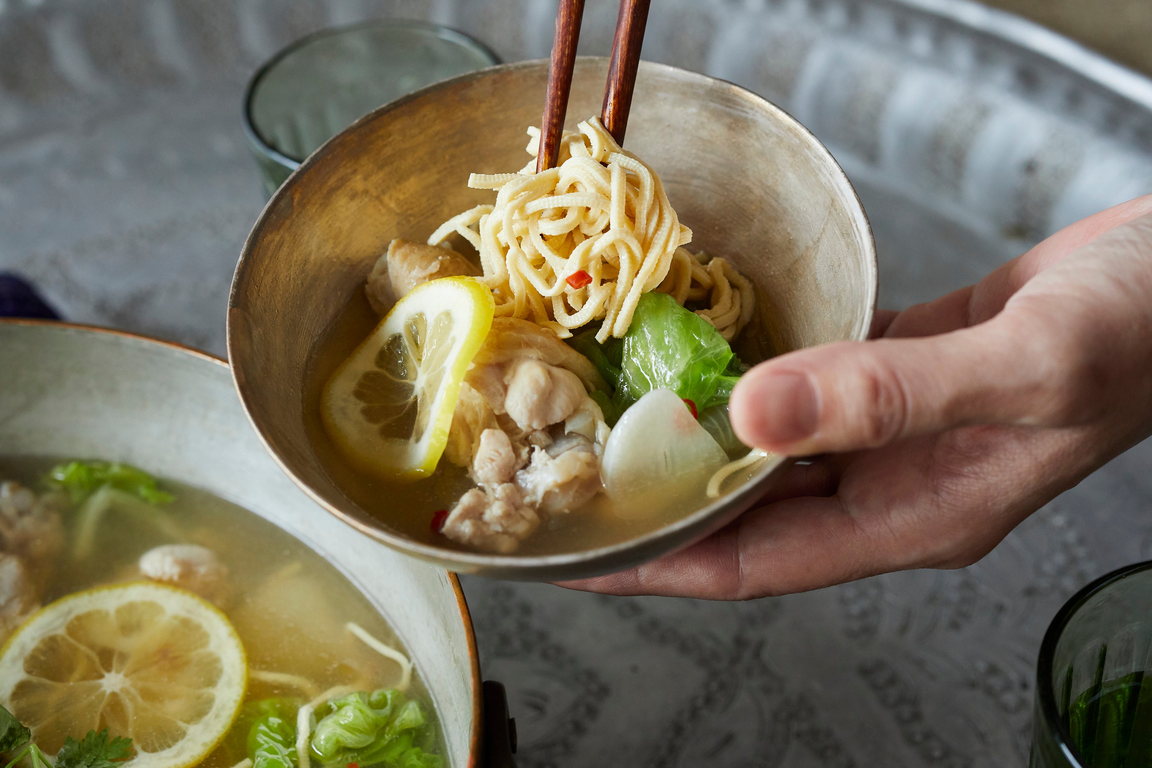 <豆腐干、手羽元、レタスのエスニックレモン鍋>