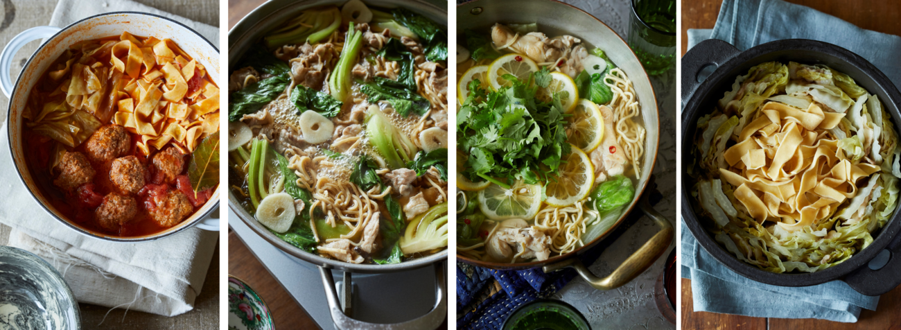 キャベツや大根、人参、小松菜など、くたっとやわらかく煮込んだたっぷりの野菜と、鶏だんご、豆腐干を入れたヘルシーな優しい味わいの鍋です。