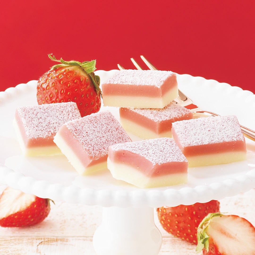 いちごの甘酸っぱい味わいを生かしたストロベリーチョコレートと、北海道産ミルクのコク豊かなホワイトチョコレートを2層にした、色合いもかわいらしい生チョコレート。いちごとミルク、2層のチョコレートがとけ合う絶妙な味わいをお楽しみください。