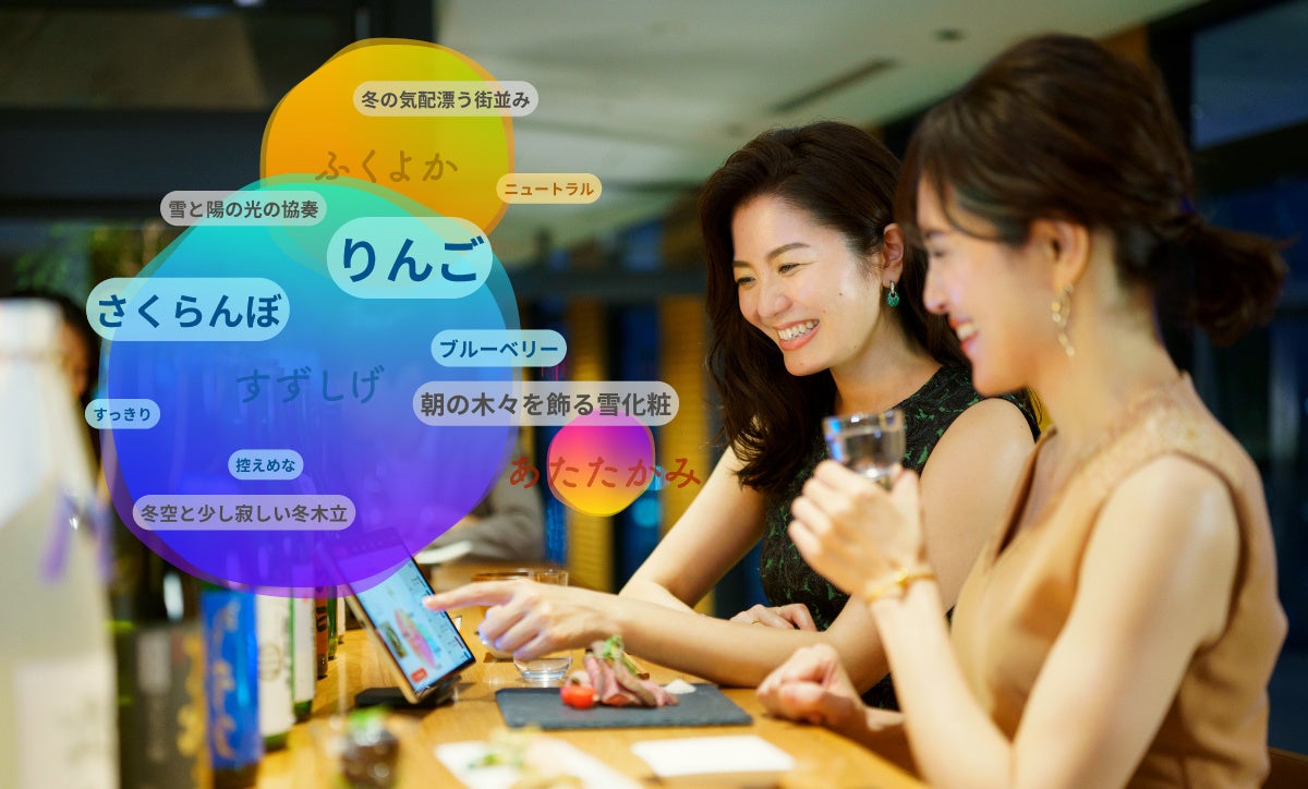 まるで唎酒師やソムリエのように、AI がお酒の風味や味わいを分かりやすい“言葉”で表現。言葉を見ながらお酒を味わうと、味覚の感度がグッと広がり、これまで感じられなかったようなお酒の味わいが感じられるようになります。