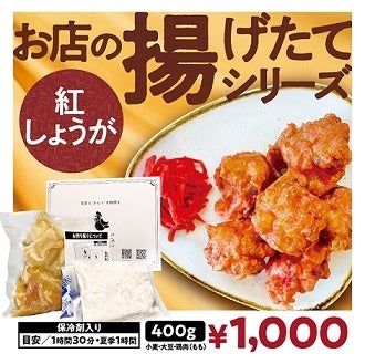 新登場!「お店の揚げたてシリーズ」では、お客様に“ひと手間”だけ加えて頂く事により、お店のサクサク&ジューシーなからあげを、ご自宅で楽しんで頂ける新商品となります。味はイルボチキン定番の「特製醬油」と「紅しょうが」の2種類からスタート、内容量も「400g」と増量いたしました!さらに漬込み肉は、揚げるだけではなく、煮物や炒め物にも味付け無しで美味しくお召し上がりいただけます。「お店の揚げたてシリーズ」ぜひ皆様ご賞味ください!