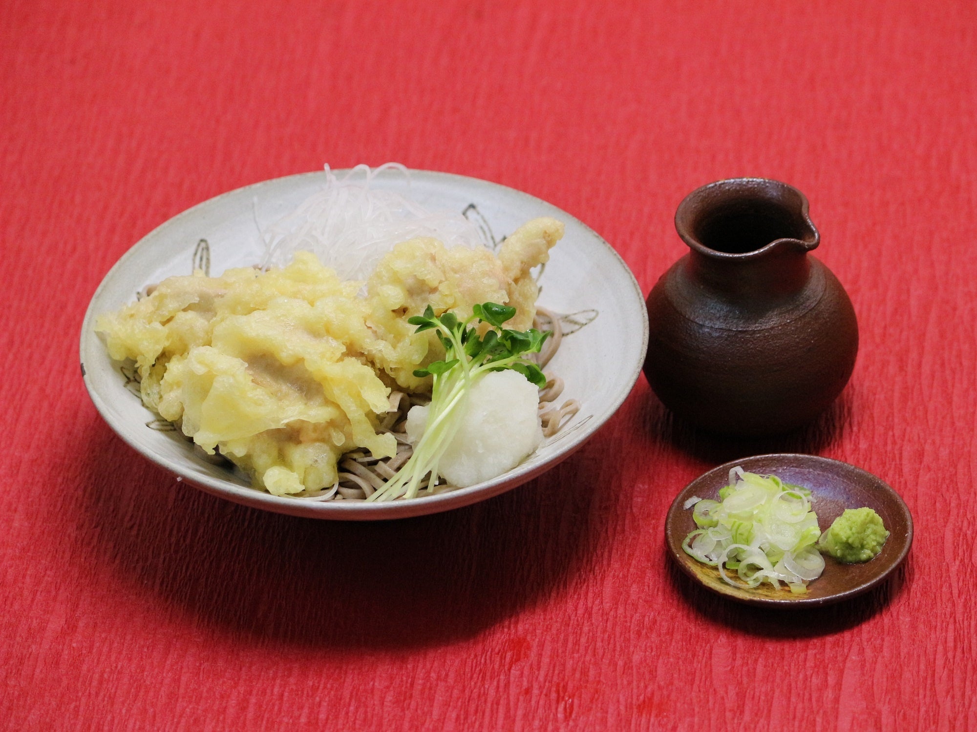 福井名物「越前おろしそば」に、塩麹を用いて柔らかく、味わいを深めた鶏むね肉の天ぷらをあわせました。おろしそばは、お好みで温かいおそば・うどんに変更ができます。
