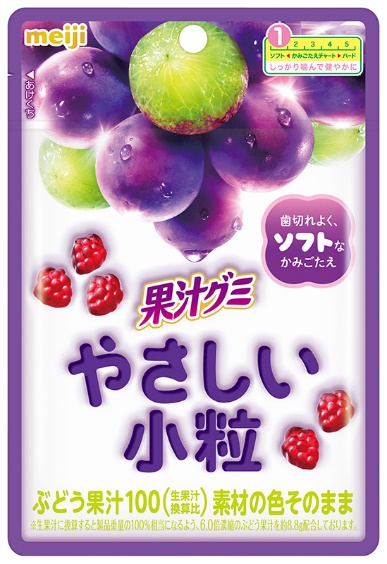 品質とパッケージをブラッシュアップし、新たにかみごたえを訴求した「果汁グミ」を11月15日(火)より新発売します。今般、人気のぶどう味より新たなかみごたえの「果汁グミやさしい小粒ぶどう」「同弾力プラスぶどう」も同日発売します。「小粒ぶどう」は食べやすいソフトな食感、「弾力プラスぶどう」はしっかりとしたかみごたえで、気分転換をしたい時にぴったりの商品です。
