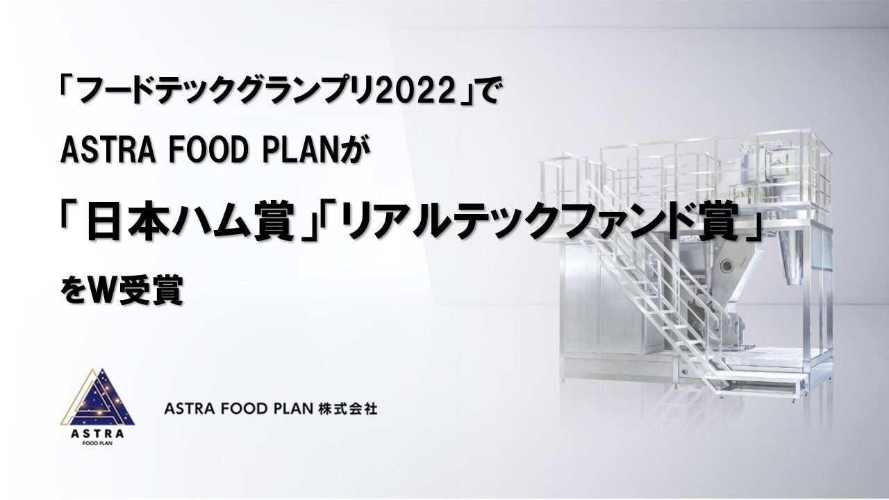 『サスティナブルな社会の実現』をミッションに掲げるフードテックベンチャーのASTRA FOOD PLAN 株式会社(埼玉県富士見市、代表取締役:加納 千裕 以下ASTRA FOOD PLAN )は、2022年10月15日に開催された「フードテックグランプリ2022」にて「日本ハム賞」「リアルテックファンド賞」をW受賞しました。また、一般投票(審査員以外のパートナー企業参加者およびファイナリスト12チームによる投票)で3位となりました。