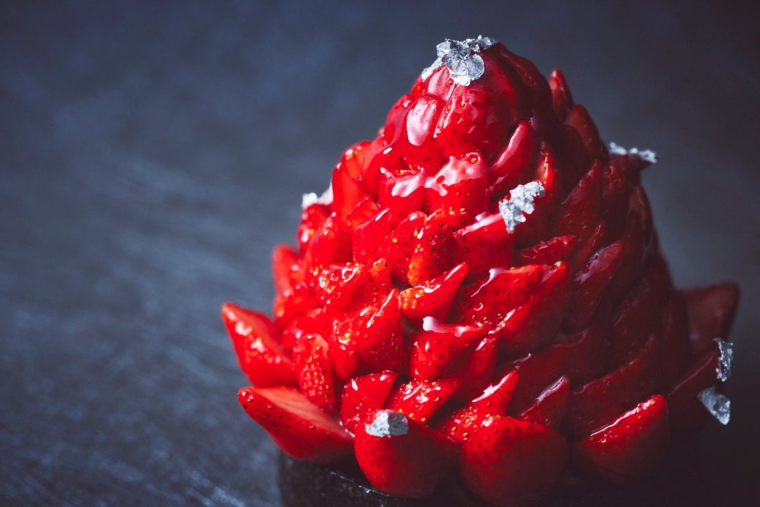 仏語で「ミニョン(mingnon、“かわいい”の意)」の名の通り、苺のスライスが華やかで愛らしいショートケーキです。しっとりした生地にクレームシャンティ、ディプロマットクリーム、ピスタチオクリームやマスカルポーネムースを幾重にも重ねた、バランス良い味わいが特徴です。