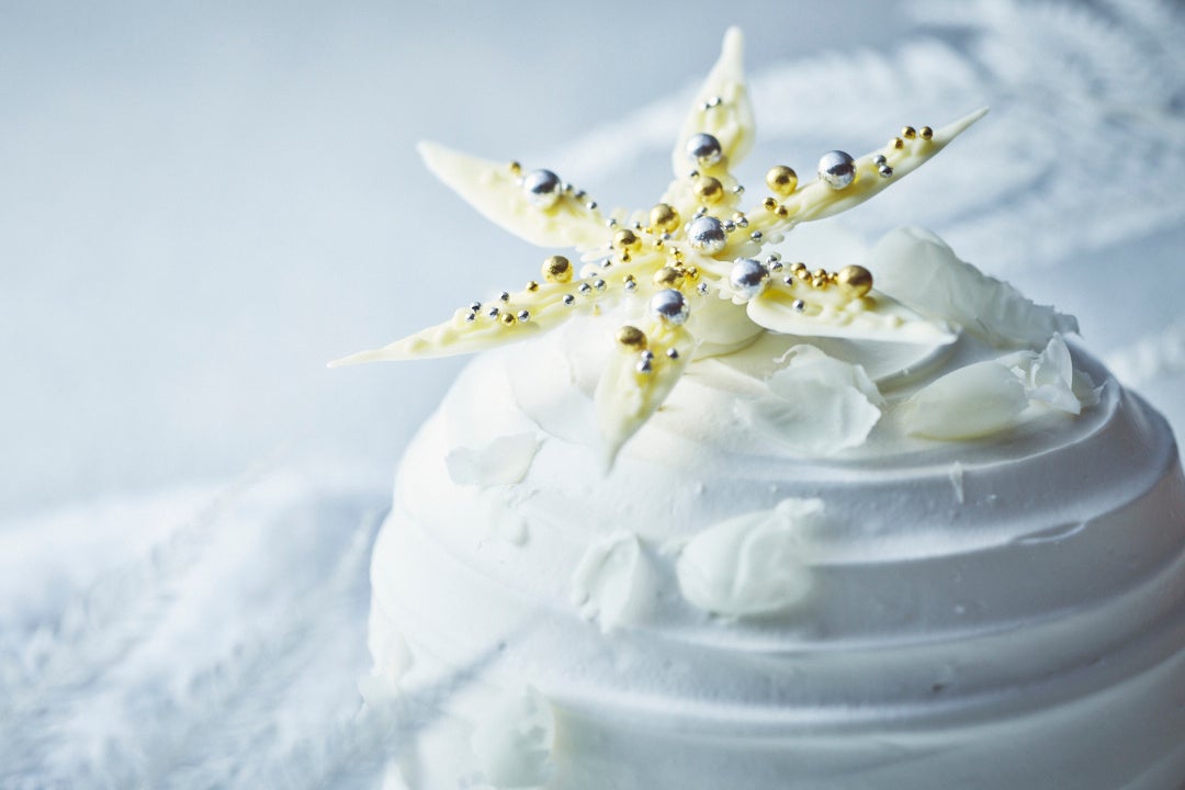 オールホワイトのチョコレート細工が繊細な、“苺が見えない、苺たっぷりのショートケーキ”が登場します。純白のクリスマスオーナメントをモチーフに、ころんとしたフォルムのケーキが食卓を華やかに演出します。きめ細やかでしっとりふわふわなスポンジ生地に、濃厚なピスタチオクリームとマスカルポーネムース、柑橘の香りがアクセントの爽やかなディプロマットクリーム、そして水分と酸味のバランスがショートケーキに一番合う「とちおとめ苺」をふんだんサンドし、シンプルながらも気品溢れる苺のショートケーキに仕上げました。切り分けた瞬間にのぞく鮮やかな苺の層もお楽しみください。