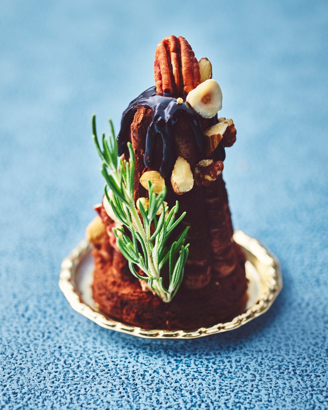 香り高いアールグレイの味わいが口の中に広がる、「クリスマスツリー(サパン・ド・ノエル)」という名のケーキ。ビターなオレンジムースやまろやかなカフェムースを重ね、ナッツの食感をアクセントに仕上げた、大人な味わいのスイーツです。